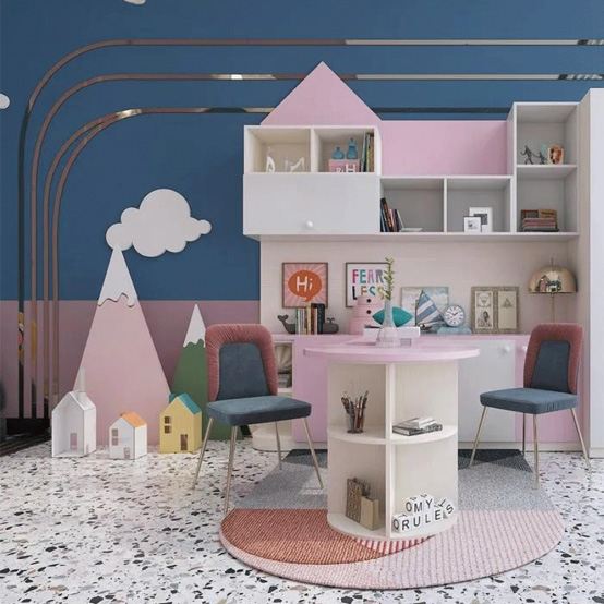 淡湖(hú)蓝干净纯粹,将其用(yòng)在儿童空间之中(zhōng),